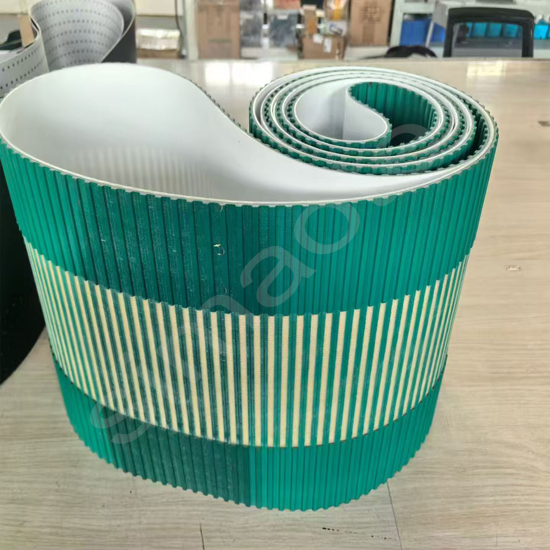 橡膠同步帶傳動是由一根內(nèi)周表面設(shè)有等間距齒形的環(huán)行帶及具有相應(yīng)吻合的輪所組成。它綜合了帶傳動、鏈傳動和齒輪傳動各自的優(yōu)點。轉(zhuǎn)動時,通過帶齒與輪的齒槽相嚙合來傳遞動力。 傳輸龍同步帶傳動具有準(zhǔn)確的傳動比,無滑差,可獲得恒定的速比,傳動平穩(wěn),能吸振,噪音小,傳動比范圍大,一般可達1:10。允許線速度可達50M/S,傳遞功率從幾瓦到百千瓦。傳動效率高,一般可達98%,結(jié)構(gòu)緊湊,適宜于多軸傳動,不需潤滑,無污染,因此可在不允許有污染和工作環(huán)境較為惡劣的場所下正常工作。 傳輸產(chǎn)品廣泛用于紡織、機床、煙草、通訊電纜、輕工、化工、冶金、儀表儀器、食品、礦山、石油、汽車等各行業(yè)各種類型的機械傳動中。橡膠同步帶的特點   (1)傳動準(zhǔn)確,工作時無滑動,具有恒定的傳動比;  (2)傳動平穩(wěn),具有緩沖、減振能力,噪聲低;  (3)傳動效率高,可達0.98,節(jié)能效果明顯;  (4)維護保養(yǎng)方便,不需潤滑,維護費用低;  (5)速比范圍大,一般可達10,線速度可達50m/s,具有較大的功率傳遞范圍,可達幾瓦到幾百千瓦;  (6)可用于長距離傳動,中心距可達10m以上。橡膠同步帶傳動的主要失效形式  ①帶體疲勞斷裂;   ②帶齒剪斷和壓潰;   ③帶側(cè)、帶齒磨損、包布剝離;   ④承載層伸長、節(jié)距增大、形成齒的干涉、爬齒;  ⑤沖擊、過載使帶體斷裂。